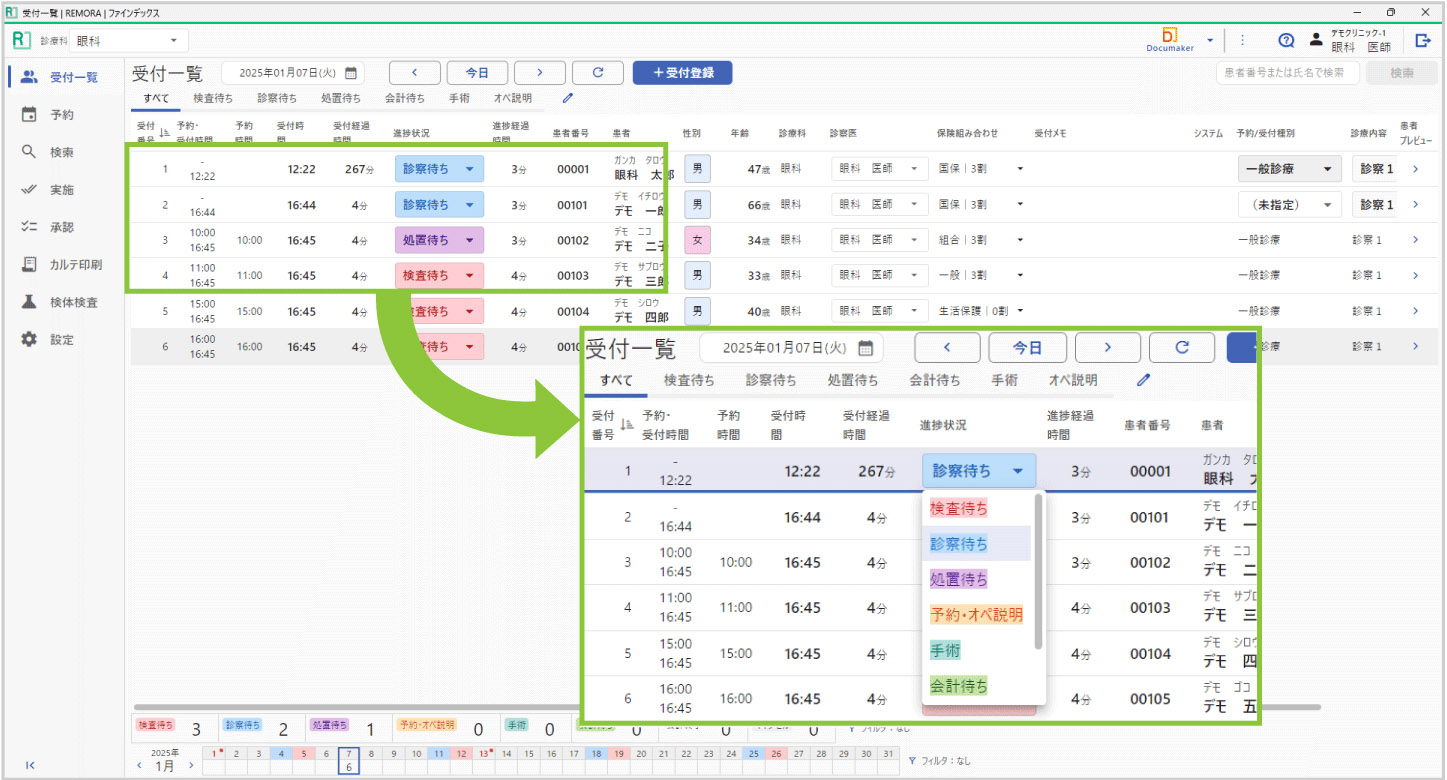電子カルテシステムREMORAは検査履歴、診療予約、家族構成、紹介状作成などの機能を標準搭載。